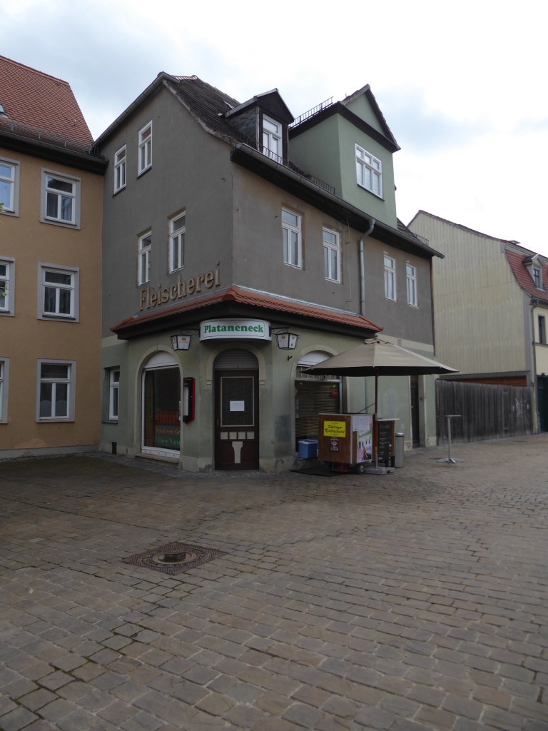 Auch das war mal eine Fleischerei. Heute wird davor Bratwurst gegrillt.