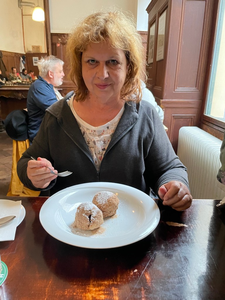 Von den beiden Zwetschgenknödeln habe ich nur einen aufgekriegt und war richtig erleichtert, dass der sonst so autoritäre Kellner mir den anderen augenzwinkernd eingepackt hat.