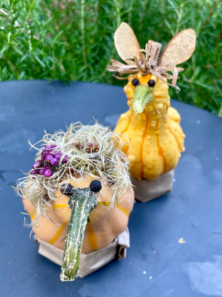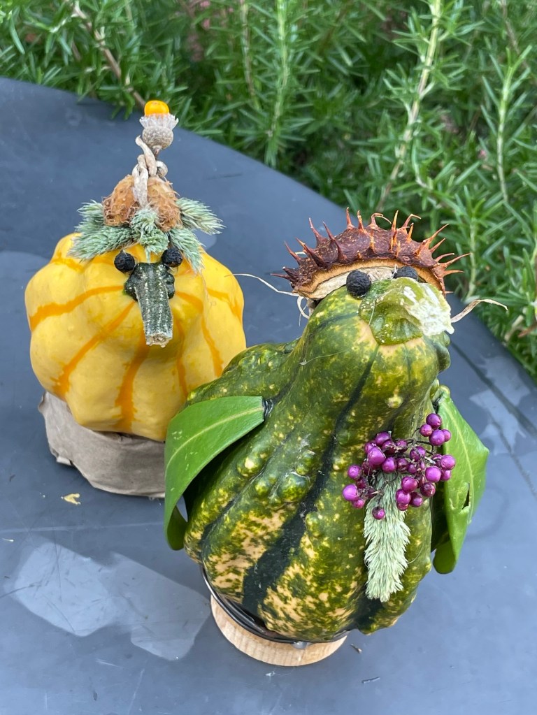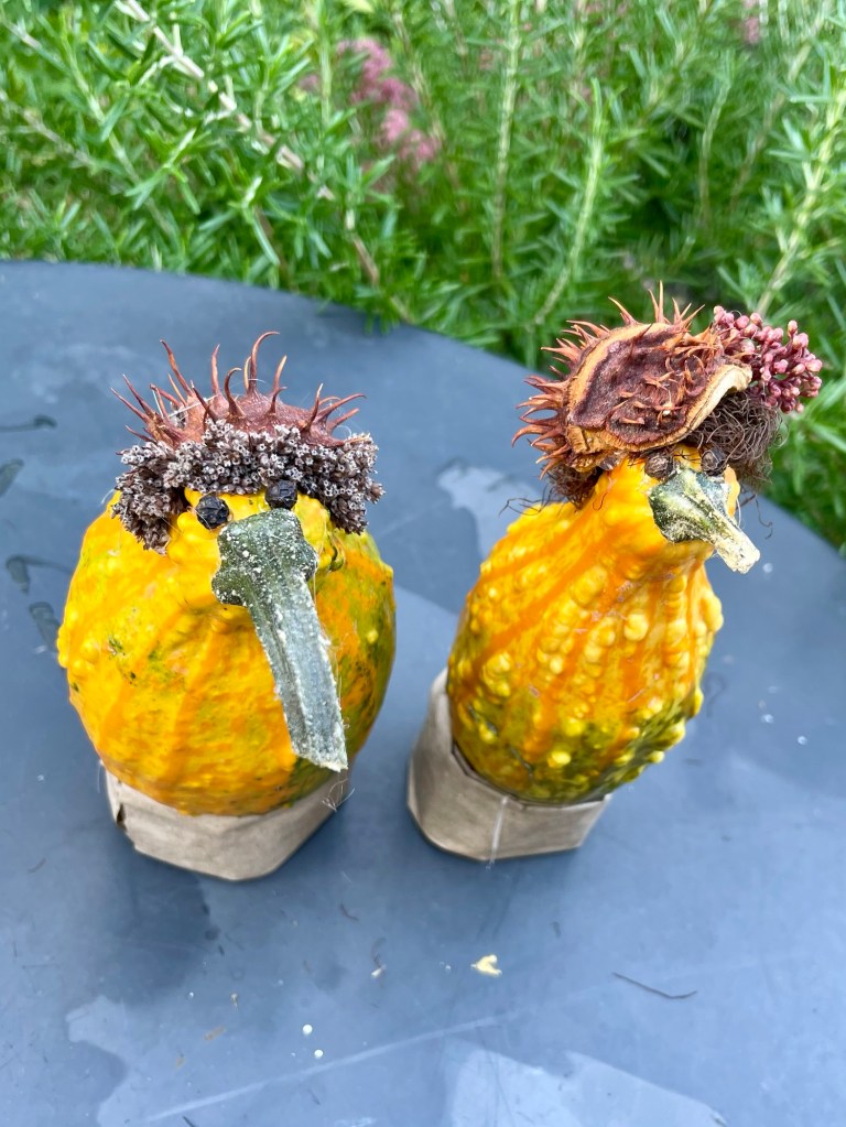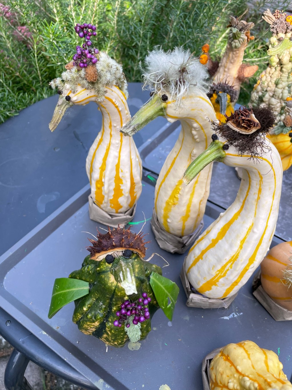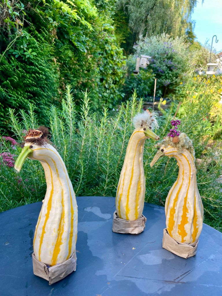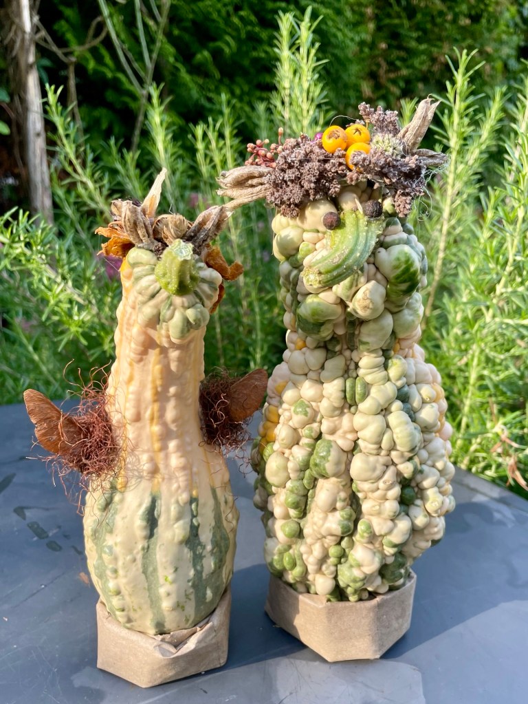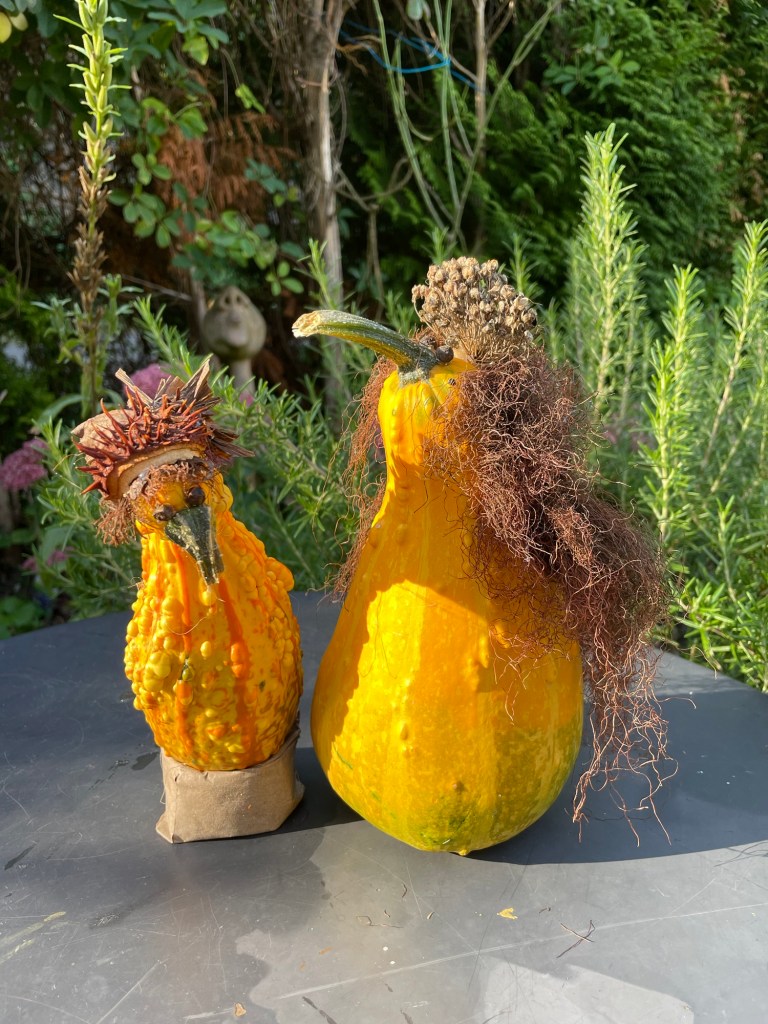 Dazu bin ich erstmal auf einen Bauernhof gefahren und habe Kürbisse gekauft, die figurativ aussehen.