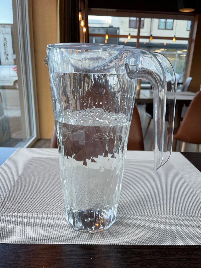 Ich bekam die Speisekarte und einen großen Krug Wasser vor die Nase gestellt.