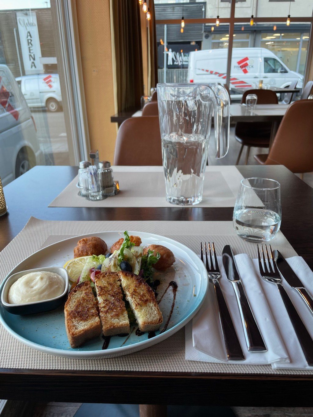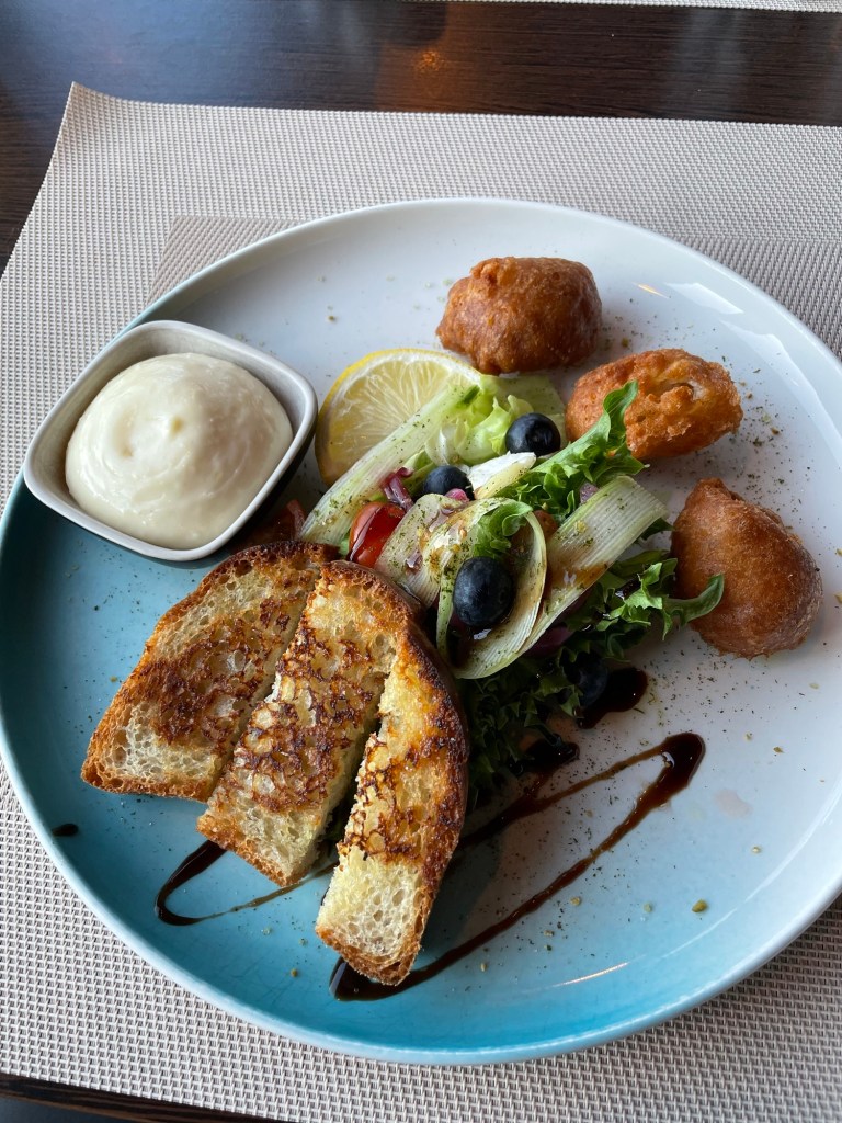 Ich muss gestehen, ich habe sie schon besser gegessen, sie waren etwas zäh. Die hausgemachte Aioli und Salat mit Röstbrot waren aber sehr lecker.