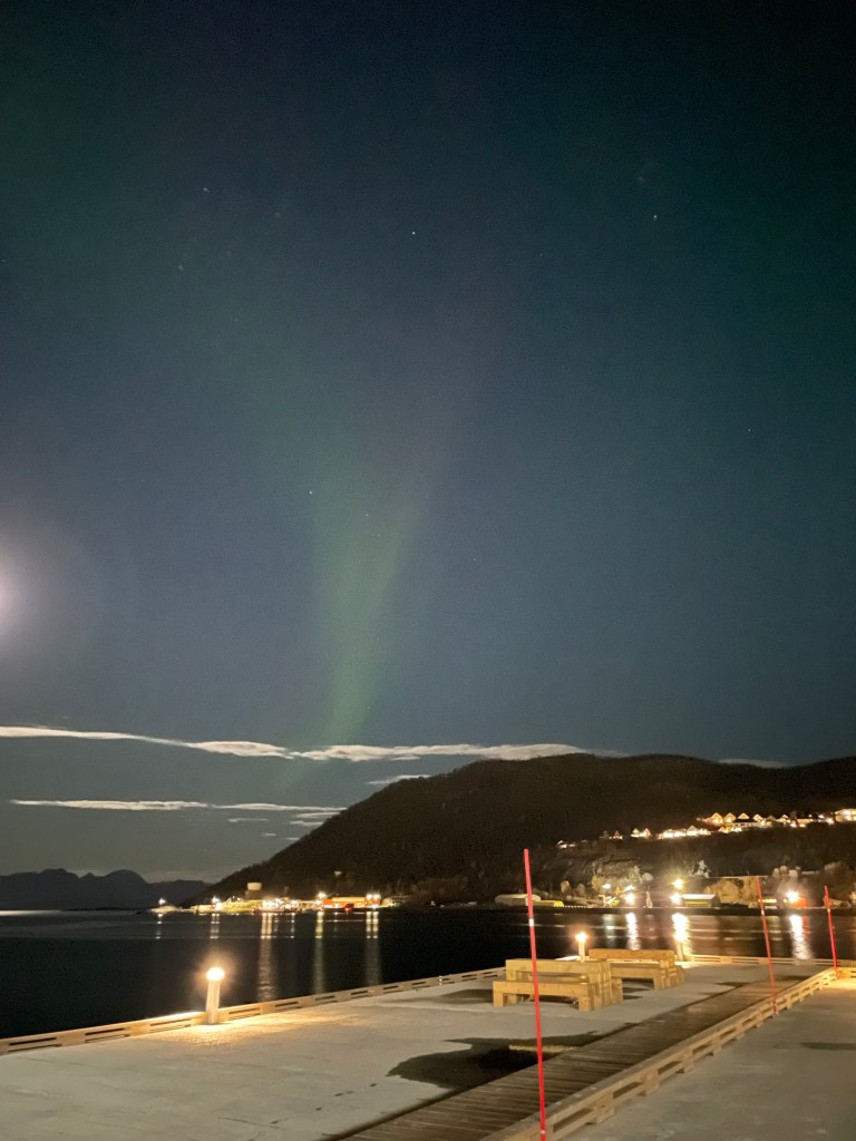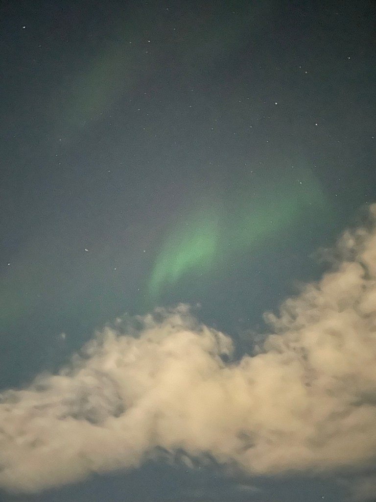 Abends bin ich dann nochmal vor die Tür zu meiner Sitzecke gegangen und siehe da: Ein Polarlicht!