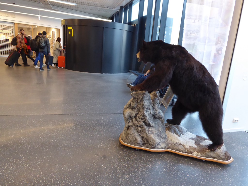 In Tromso angekommen beonachtet ein Bär die einreisenden Touristen.