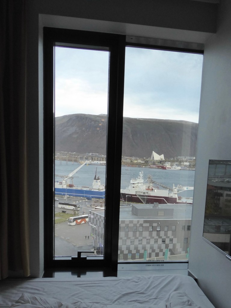 Auch in Tromsø wohne ich wieder im höchsten Hotel direkt am Hafen.