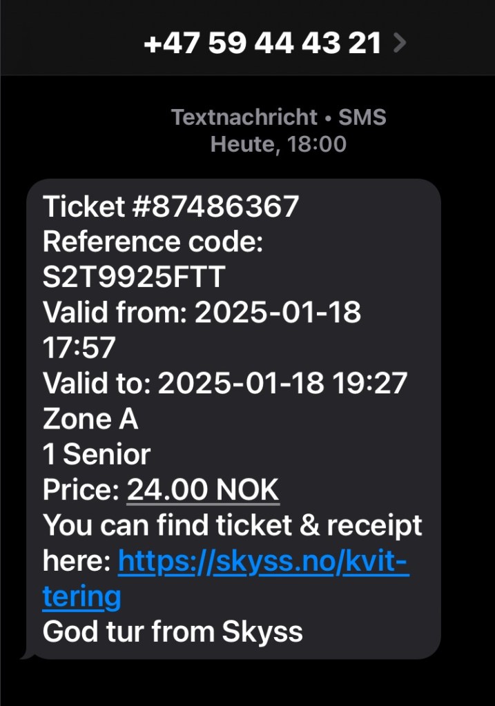 Der Fahrkartenkauf war auch ganz einfach. Erwachsener, Kind oder Senior auswählen, das versteh ich auch auf norwegisch, 2 Stunden gültig, mobil bezahlen, fertig.