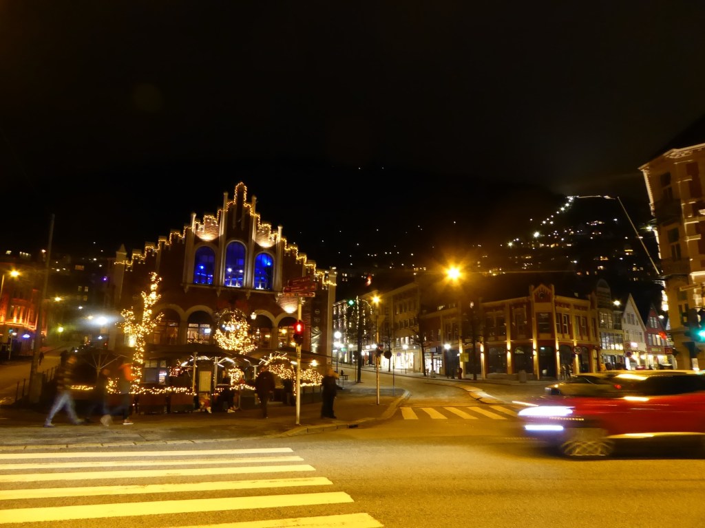 Das ist Bergen bei Nacht. Noch ein paar Meter und ich bin im Hotel.