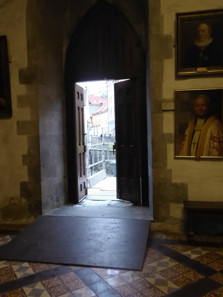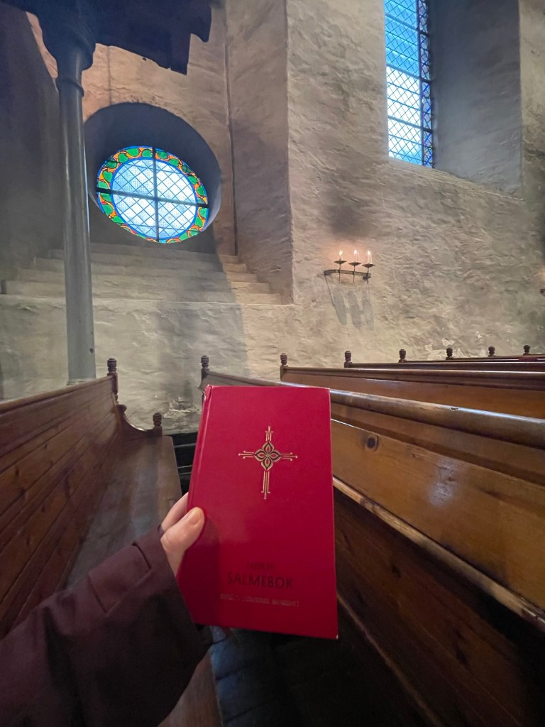 Keine Ahnung, warum ich die Tür zum Hauptschiff aufgemacht habe und direkt eine junge Frau vor mir stand, die mir lächelnd ein Gesangbuch in die Hand drückte.