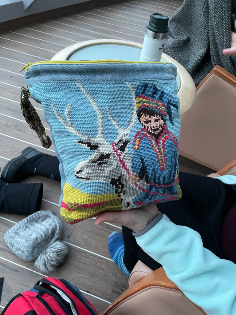 Richtig schön finde ich auch diese Tasche einer Mitreisenden, die aus alten Sami Stickereien gemacht ist. Die hätte ich auch gekauft.