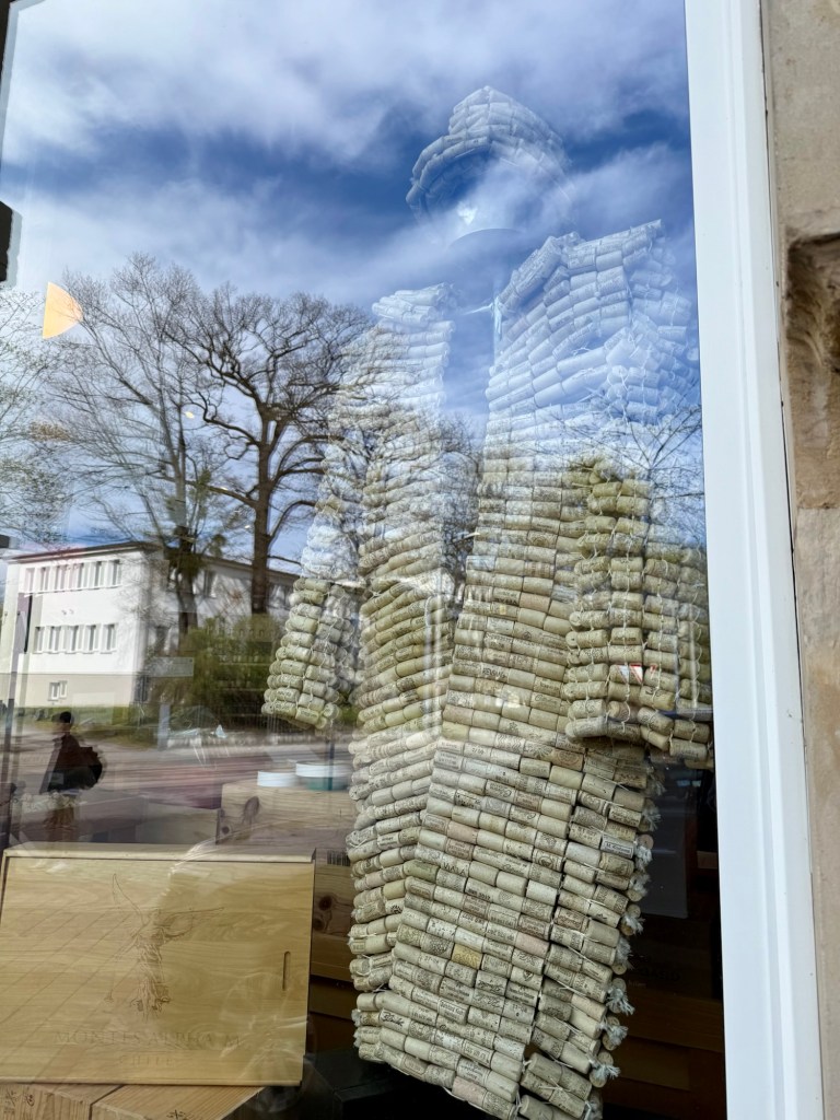 Hut und Mantel aus Weinkorken.