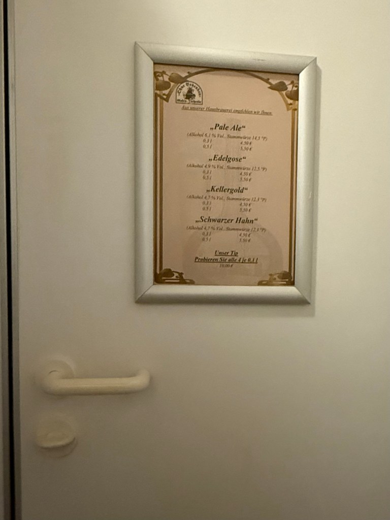 Selbst die Toiletteninnentür wird genutzt, um die Besucher über die hausgebrauten Biersorten zu informieren.