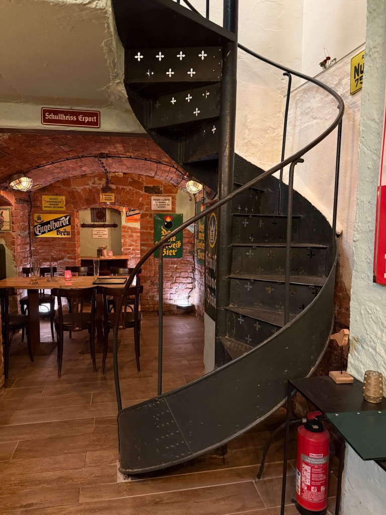 Die Treppe mag für Leuchtturmwärter kein Problem sein, für eifrige Zecher und Kellner mit vollen Tabletts vielleicht doch.
