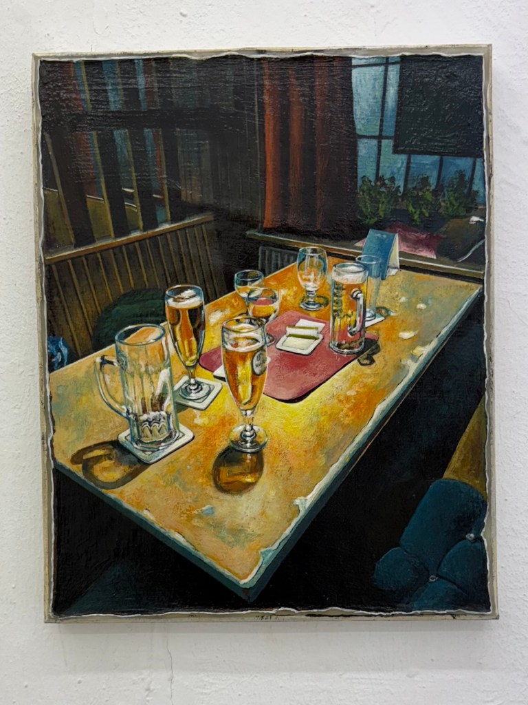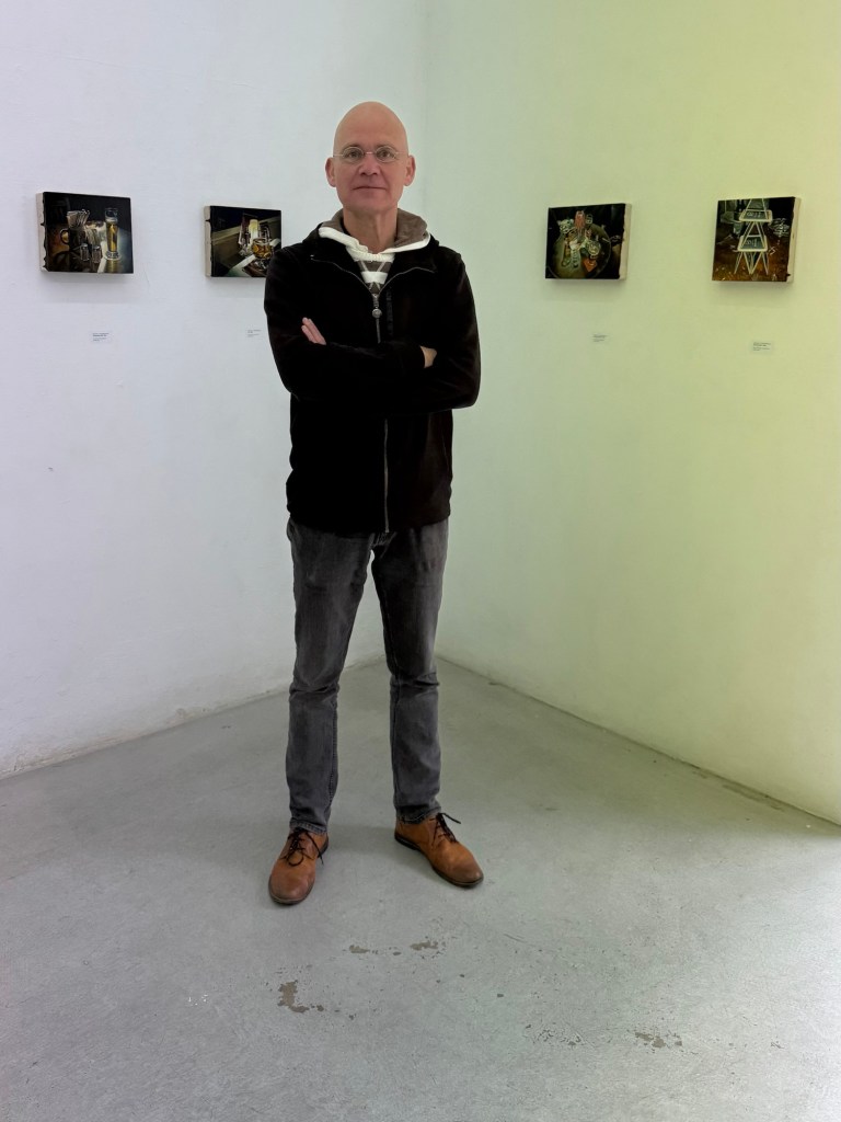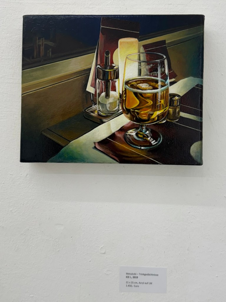 Herr Metulczki stellt ein paar Häuser weiter seine Serie „Trinkgedächtnisse“ aus.