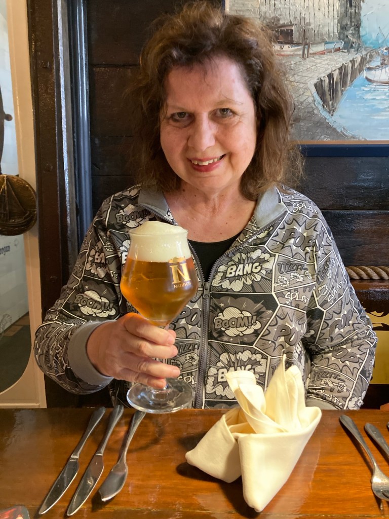 Ich trinke ein Auswandererbier und die Serviette ist wie ein Schiff gefaltet.