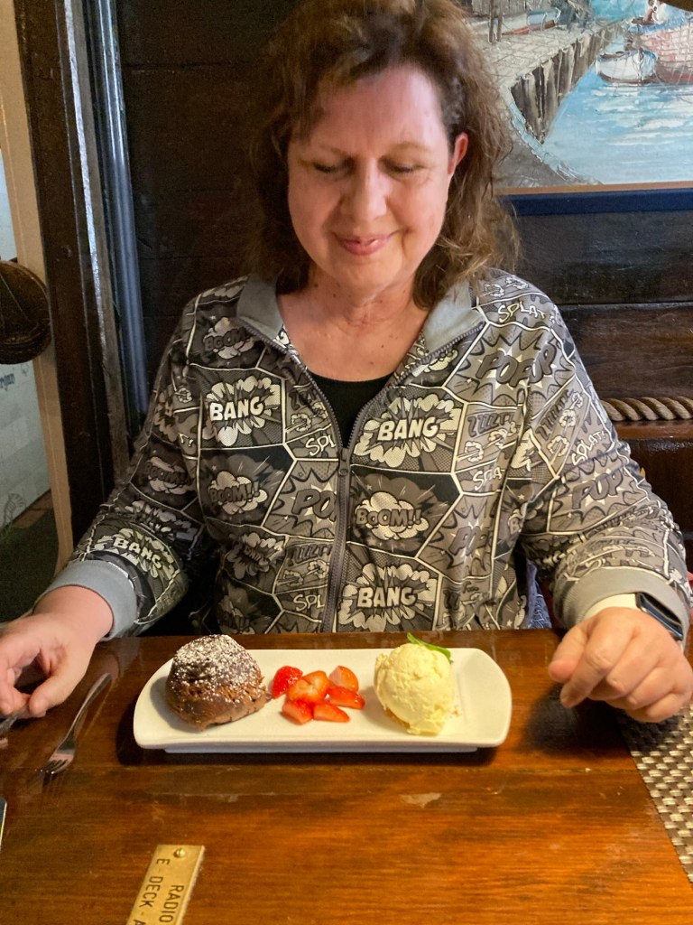 Aber das Küchlein mit flüssigem Schokoladenkern und Vanilleeis passte dann doch noch rein.