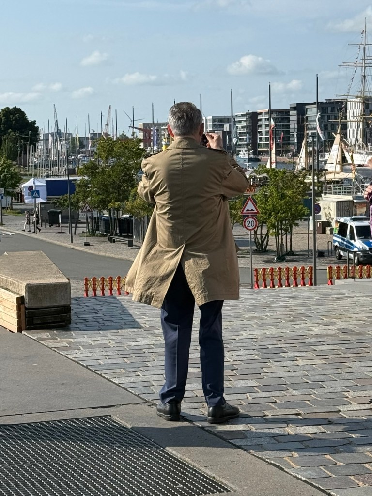 Ich hätte ihm auf die Schulter tippen können, als er ein Foto vom Hafen machte.