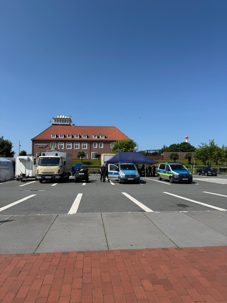 Auf unserem Abendspaziergang fiel uns erhöhte Polizeipräsenz auf. THW und Katastrophenschutz waren auch mit dabei.