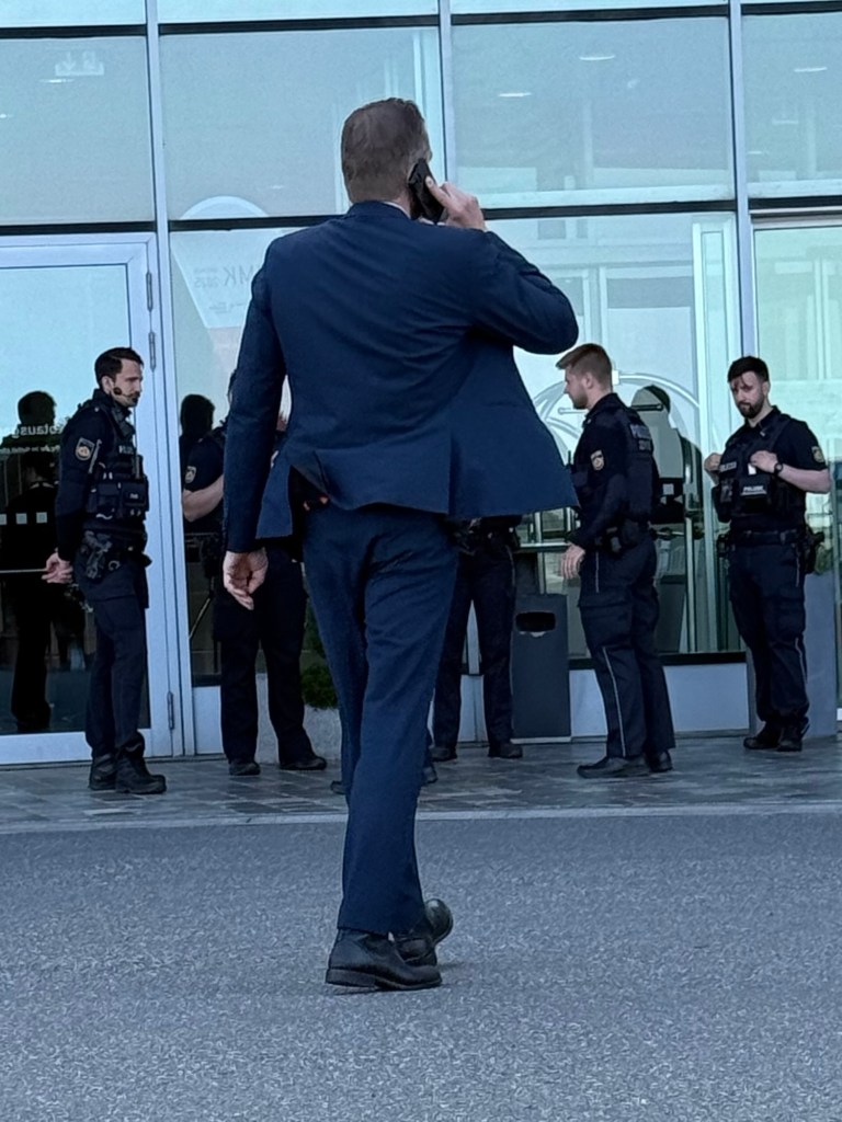 Der Personenschutz mustert einen nur, aber wenn sie sehen, dass man ein ganz normaler biodeutscher sensationsgeiler Rentner ist, lassen sie einen gewähren.