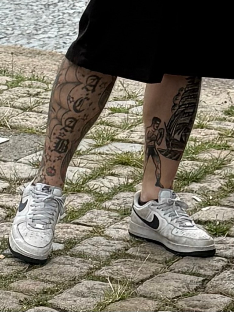 Schmähungen der Polizei auf dem Unterschenkel