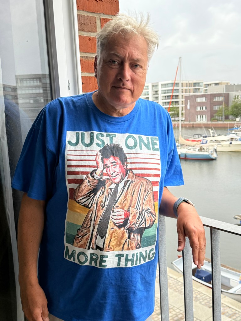 Zum Geburtstag bekam er ein Shirt mit seinem Lieblingsinspektor.