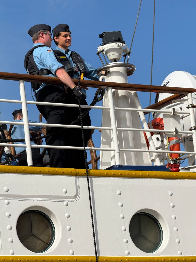 Morgens um 8 wurden wir durch die deutsche Nationalhymne geweckt, die ein Schiff lautstark zum Abschied spielte.