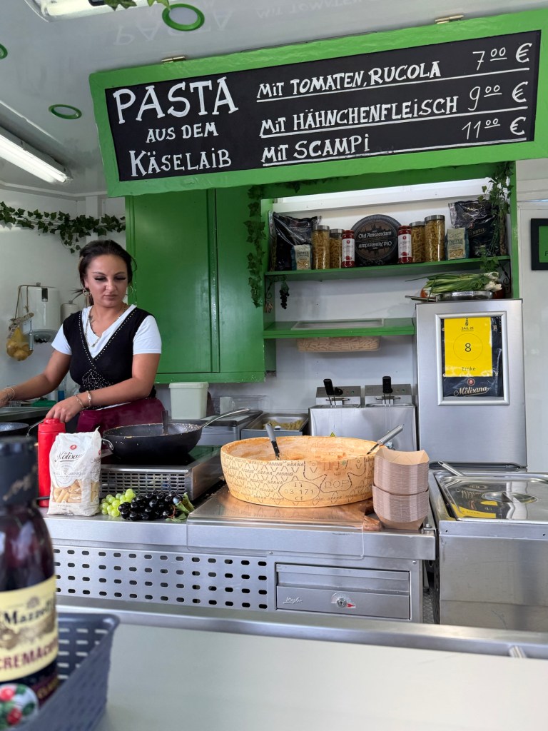 Beides kam dann in den Parmesanlaib und wurde abermals begossen.