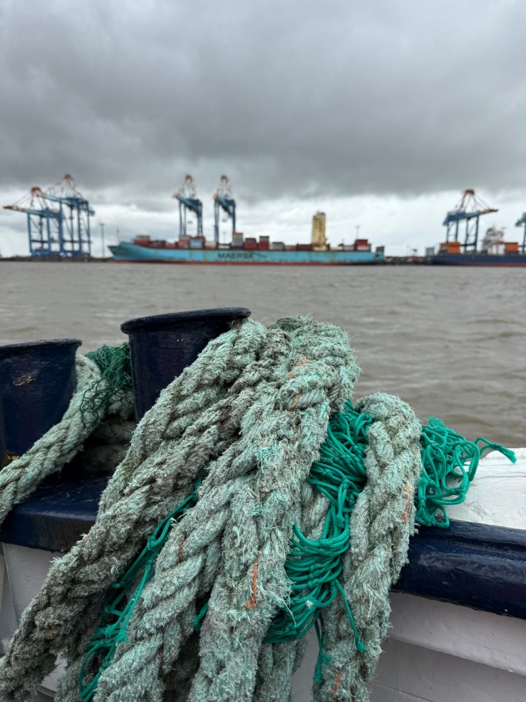 Der eine hatte als Lotse gearbeitet. Da fährt man von einem großen Lotsenschiff, das 60 km vor dem Hafen liegt und auf dem man auch übernachtet, mit den großen Pötten immer hin und her und berät die jeweiligen Kapitäne.