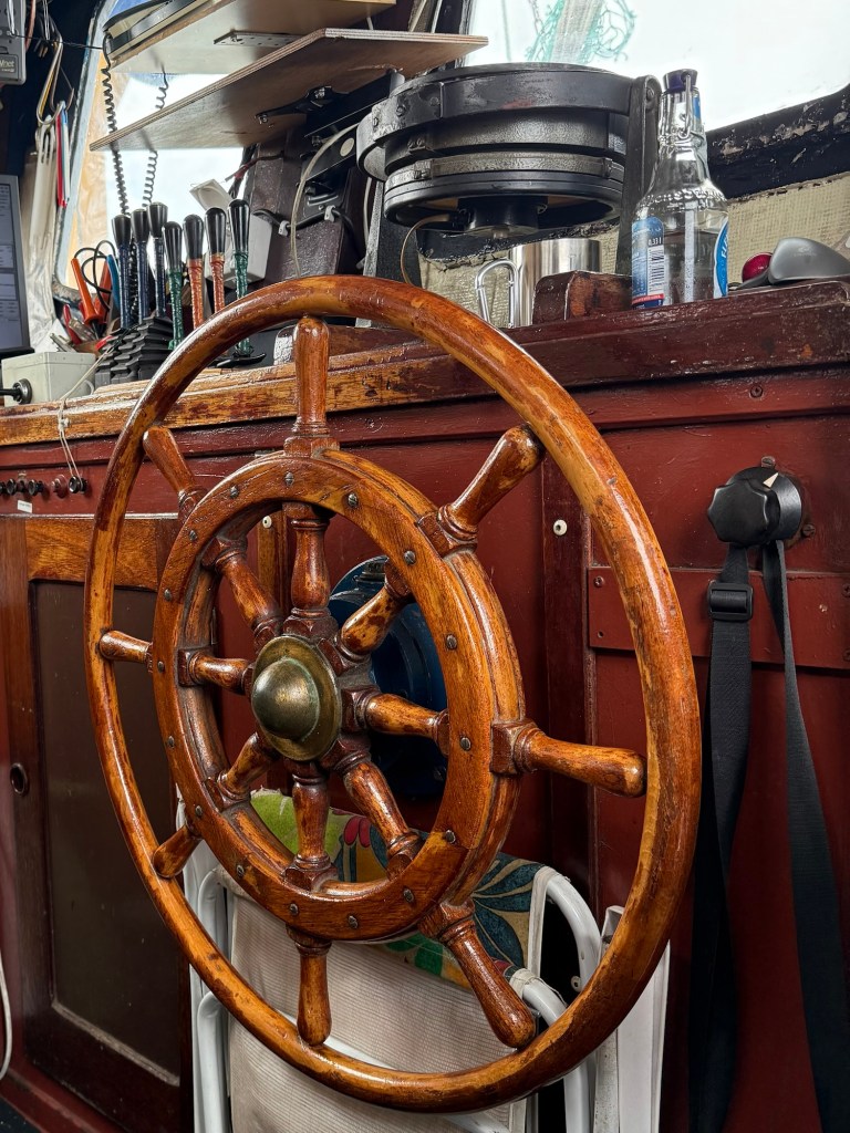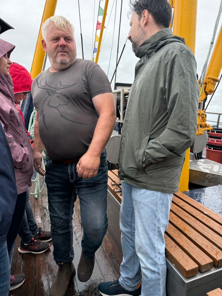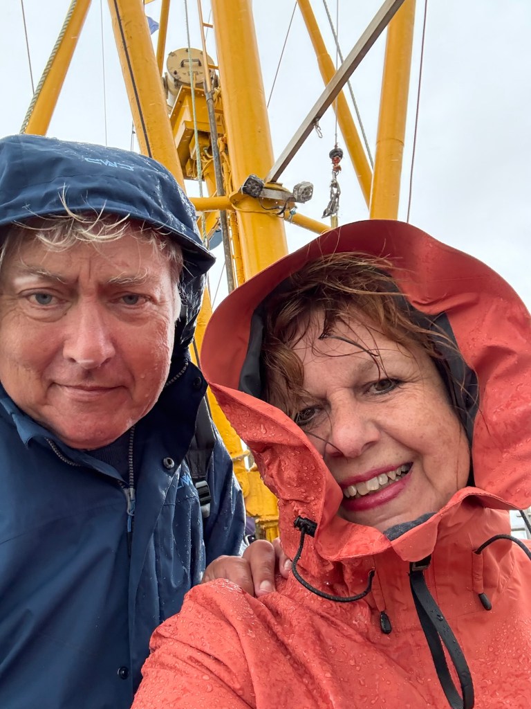 Der fast 50 Jahre alte Kahn hob und senkte sich, die Gischt spritzte über die Bordwand und war bald nicht mehr von den einsetzenden Regenschauern zu unterscheiden.