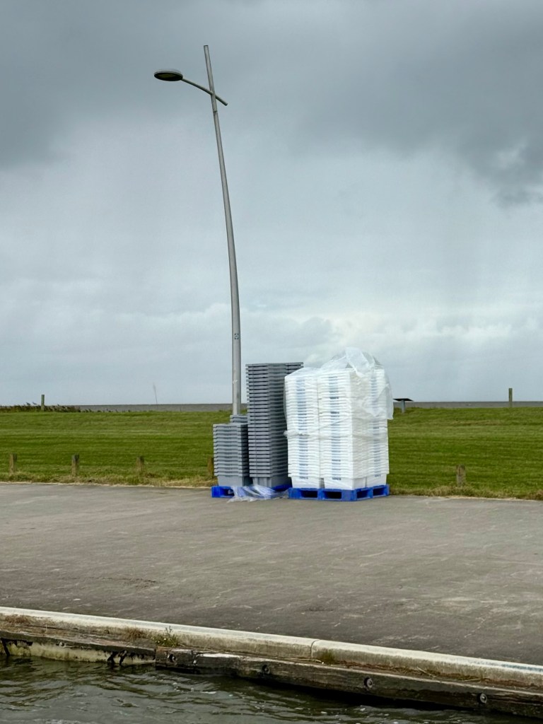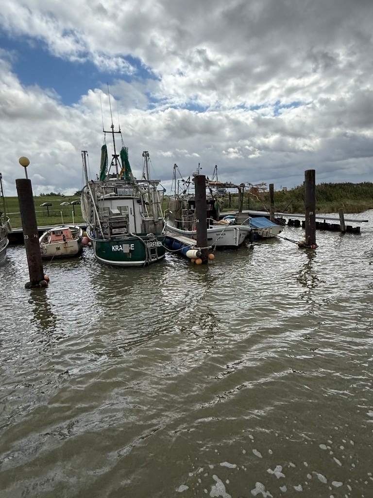 Wie wir so durch den kleinen Hafen in Wremen schlendern, sehen wir, dass an einem Kutter ordentlich Betrieb ist.