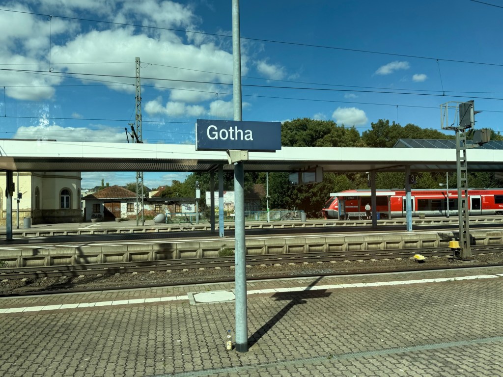 Der Fahrgastbefrager konnte den Aufenthalt und das Gerumpel erklären: Ab jetzt geht es per Diesellok weiter, weil die Strecke noch nicht elektrifiziert ist.