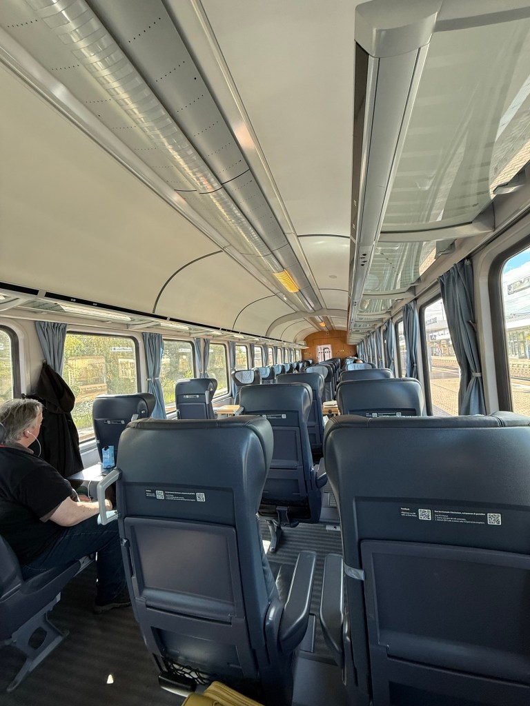 Im Zug war es hochsommerlich warm. Für die wenigen Fahrgäste hielt man wohl den Einsatz der Klimaanlage für überflüssig.