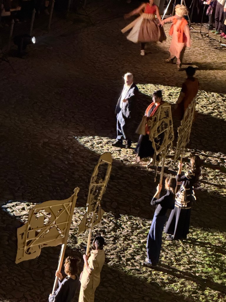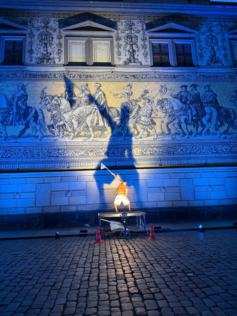 Auf jeden Fall beabsichtigt war die Parallele der Gesten des Tänzers zum Fürstenzug.