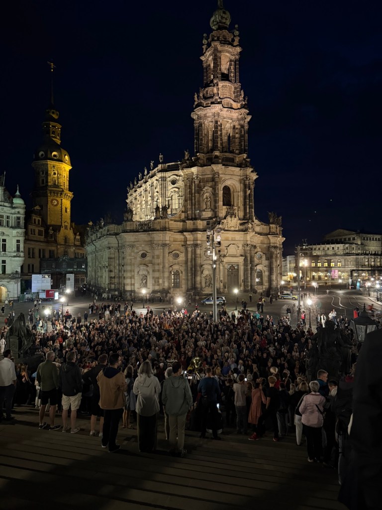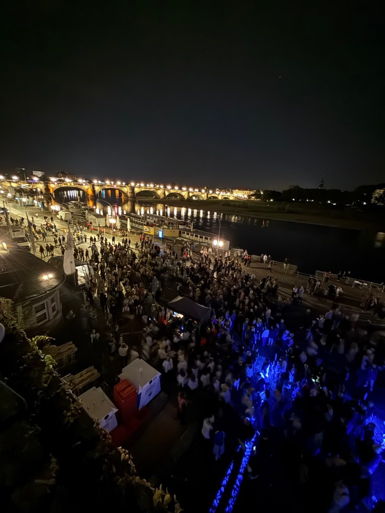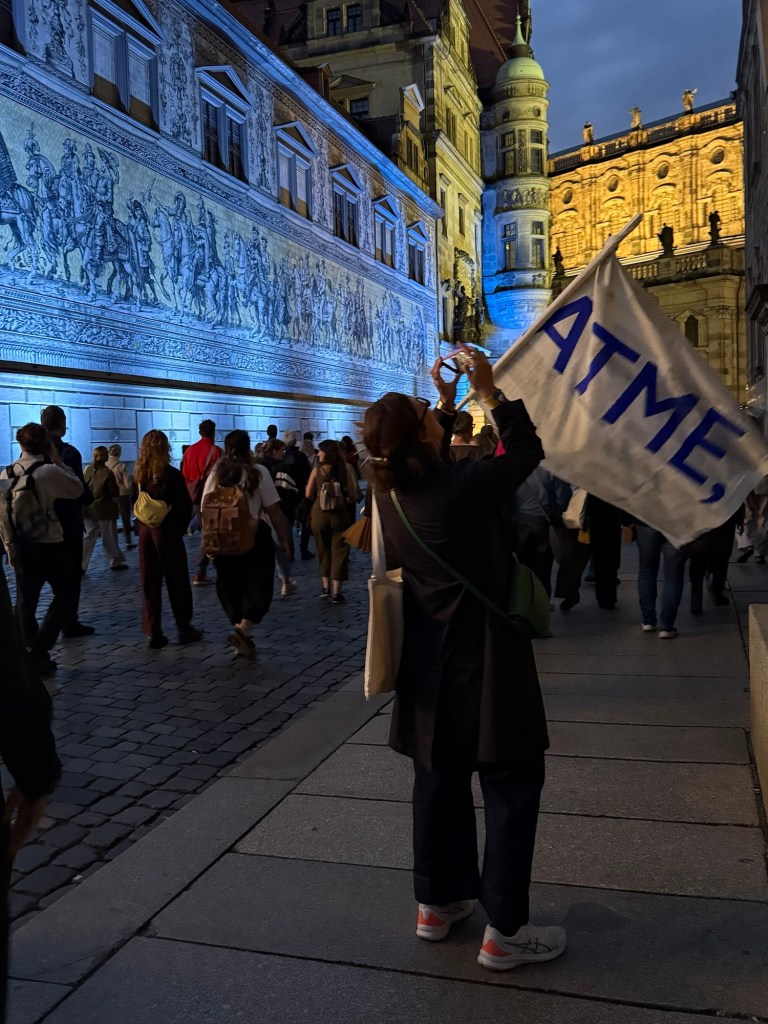 Weiter ging es mit Fahnen, Musik und Papphüten zu den Brühlschen Terrassen.