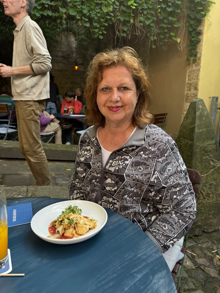 Heute kommen nicht nur Gäste, sondern auch Teilnehmer einer Stadtführung in den Hinterhof, die einem interessiert auf den Teller schauen und fragen, wie es schmeckt.