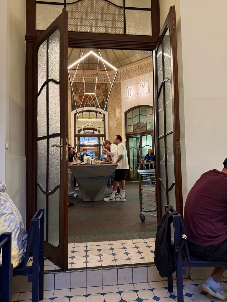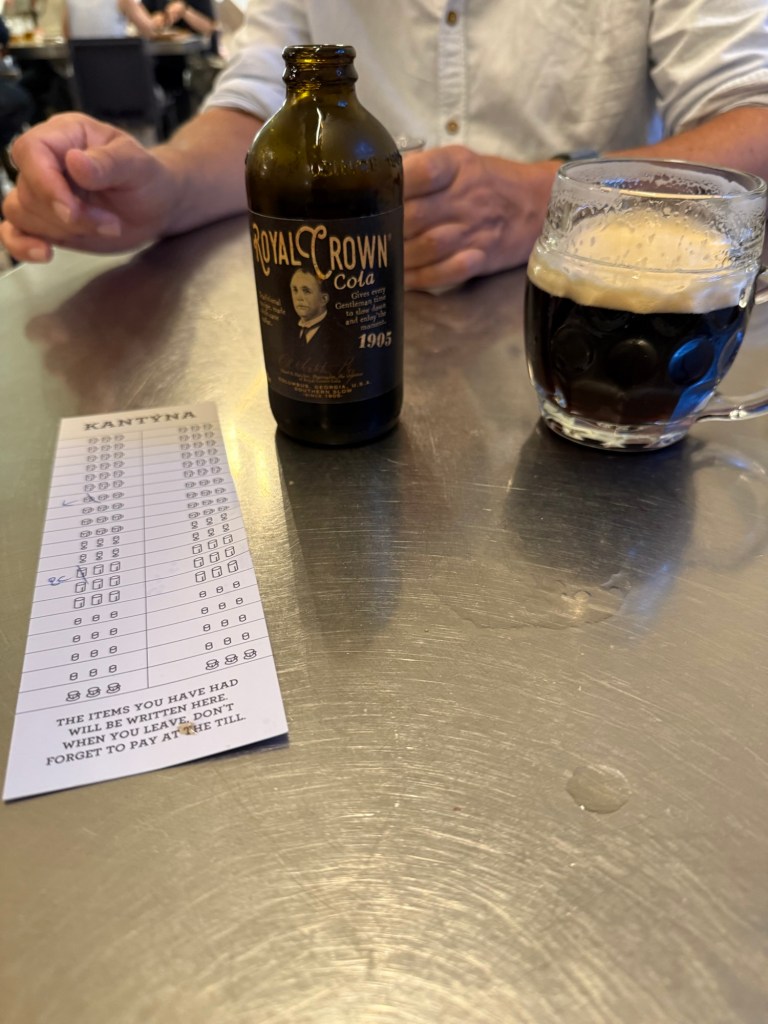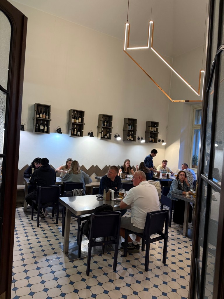 Das Bier fließt wie überall in Prag in Strömen. Es wird schnell gezapft und man muss sehen wie man mit dem überschäumenden Getränk an seinen Tisch kommt ohne den Boden nicht noch mehr vollzuplempern.