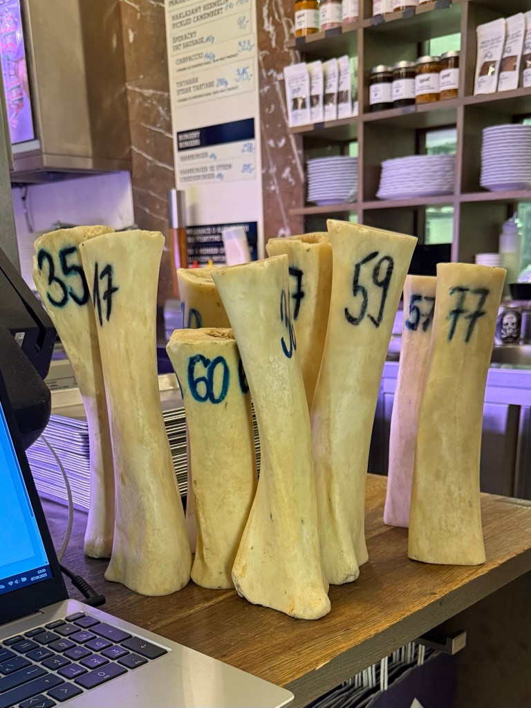 Wie erwähnt gibt es jeden Mittwoch die Spezialität des Hauses: gegrillte Markknochen. Auch nur eine Vorspeise.