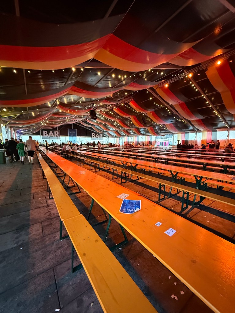 Und ob! Man feiert hier allen Ernstes Oktoberfest!