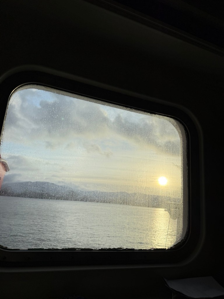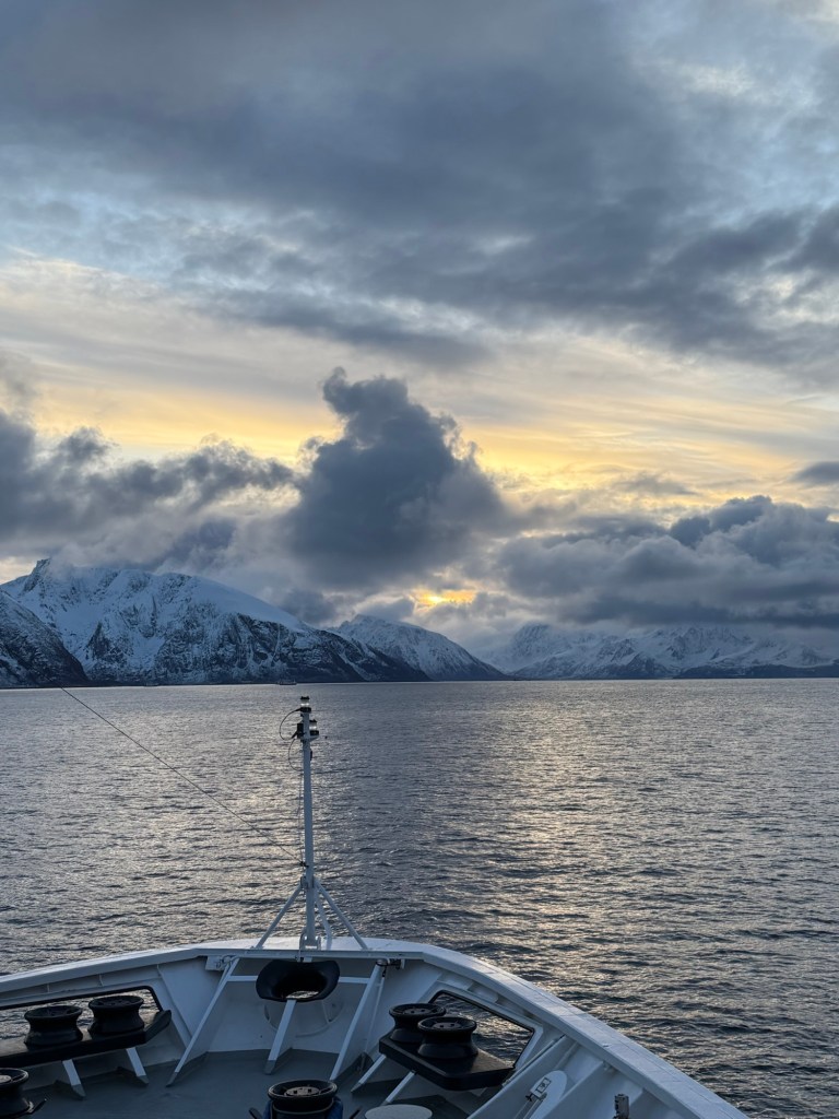 Der Kapitän entschuldigte sich heute mit der Durchsage, dass die polaren Tiefdruckgebiete oft unvorhersehbar und mit großer Stärke auftreten können.