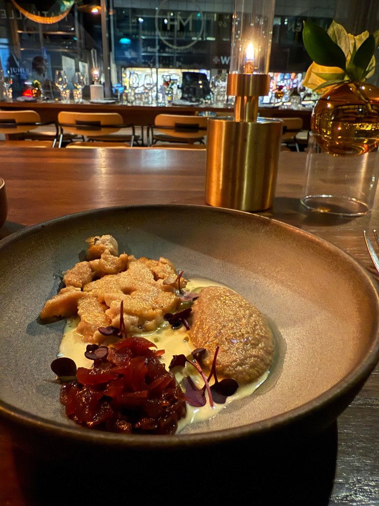 Danach gab es noch Kalbsbries mit Pilzcreme und roten Zwiebeln. Ein Gedicht!