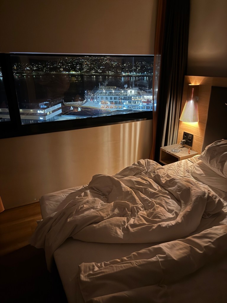 Die letzte Nacht in meinem schönen Zimmer mit Hafenblick.