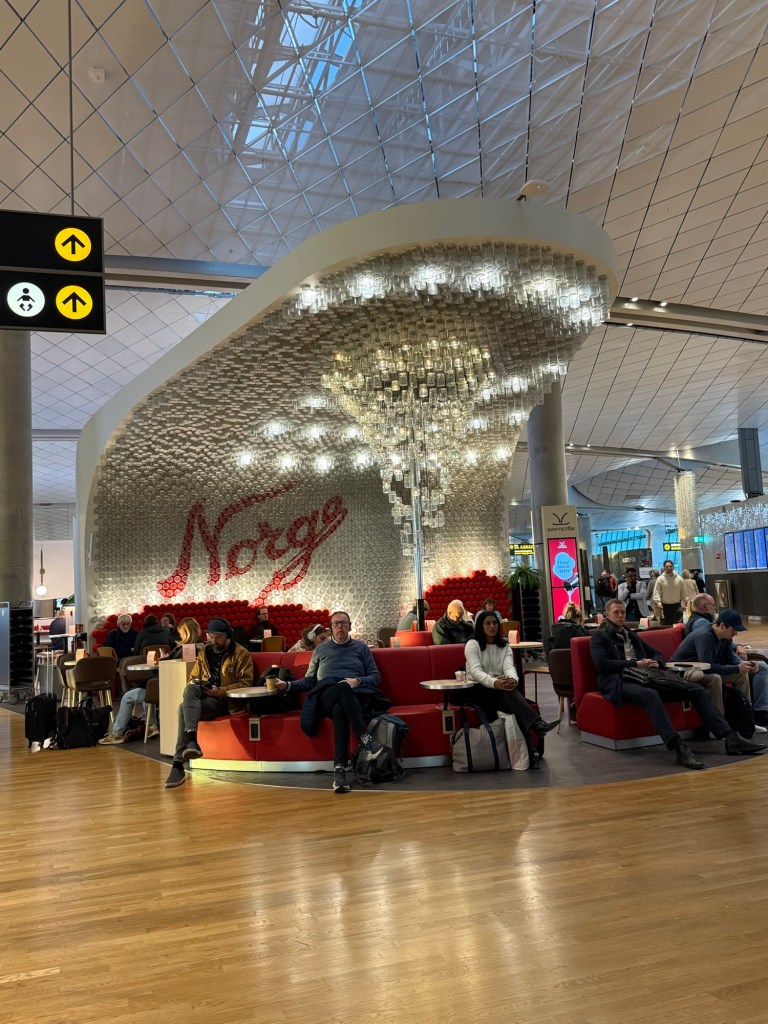 Der Flughafen in Oslo ist richtig gemütlich, dafür, dass es eine Hauptstadt ist. Kopenhagen und Amsterdam sind viel weitläufiger und stressiger.