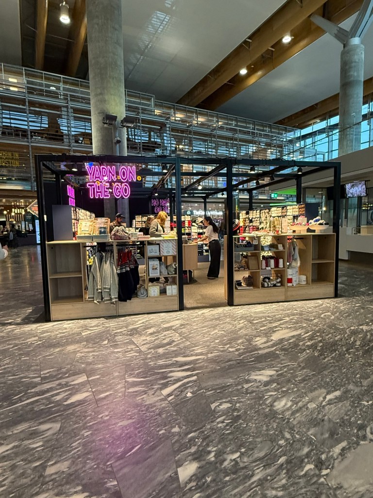 Hier gibt es sogar ein Wollgeschäft am Flughafen.