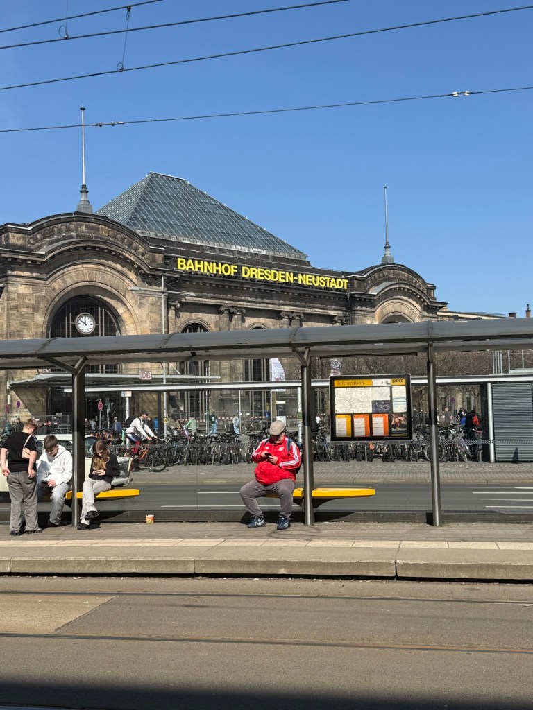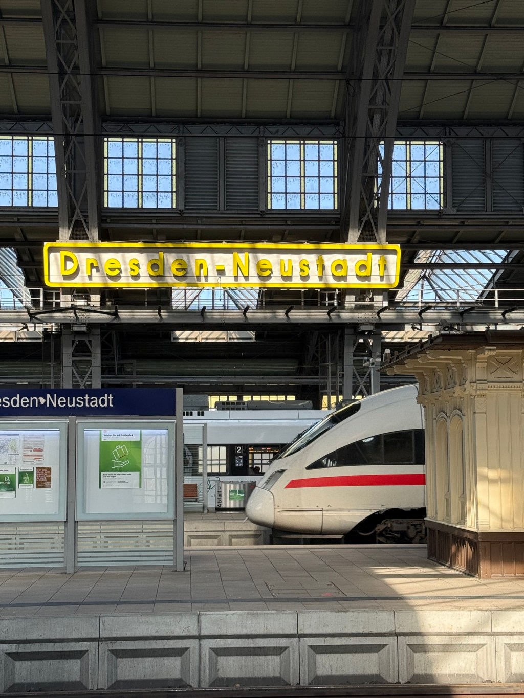Ich bestand auf einem Kompromiss und so kamen wir mit halb geschlossenem Rollo in Dresden – Neustadt an.