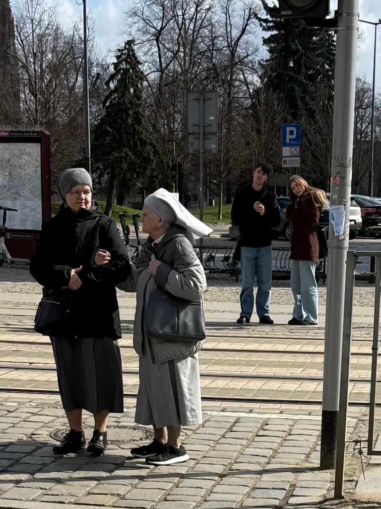 Die grauen Franziskanerinnen leben nicht unbedingt im Konvent und dürfen sich weltlicher mit Winterjacke und Turnschuhen kleiden.