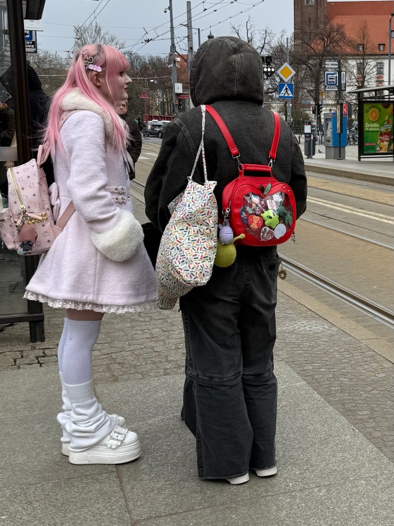 Die Frauen am Bahnsteig sehen aus wie aus einem japanischen Manga Comic.